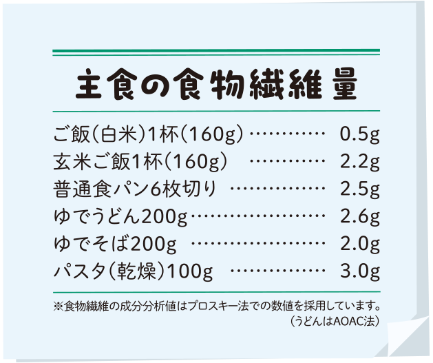 実は白米のみだと、ご飯1杯(160g)の食物繊維は0.5gと、主食の中では低い方...