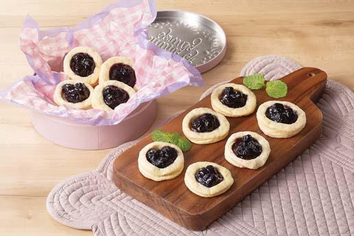 - 粗熱がとれたら、くぼみにジャムをのせて出来上がり。