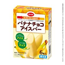 コープのペルー産有機栽培バナナの規格外品をピューレ化した果汁を5%配合したバナナアイスを、バナナ味のチョコでコーティングしたアイスバーです。