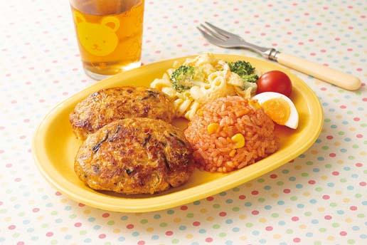- 小判形に成型して真ん中を凹ませたら、薄く油をひいたフライパンで焼いてできあがり。