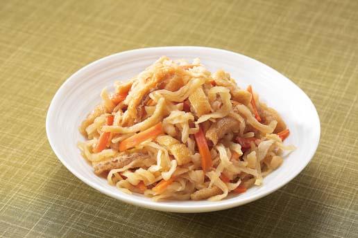- CO・OP切干大根人参ミックスはさっと洗い、かぶるくらいの水に約20分つけ、軽く絞ってから食べやすい大きさに切る。このとき、戻し汁はとっておく。