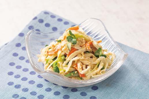 - きゅうりは千切り、かいわれ大根は3㎝長さに切る。