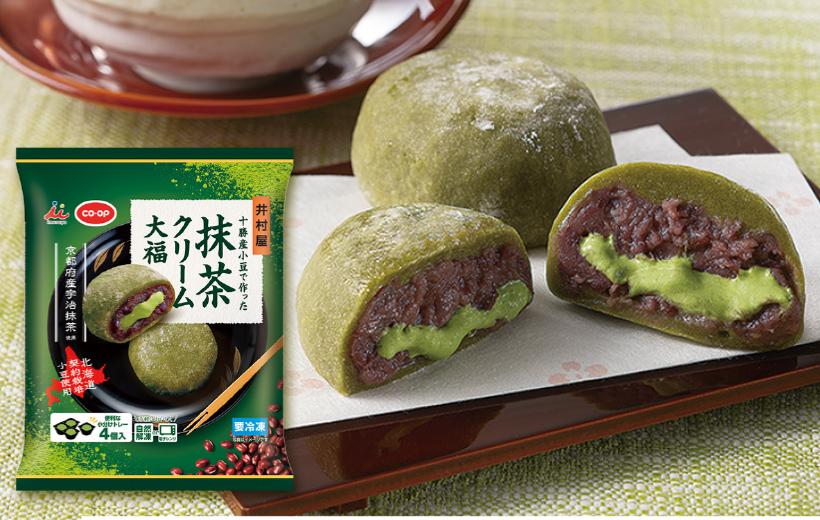 CO・OPでは「十勝産小豆で作った あずきバー」など、井村屋とのダブルブランド商品を共同開発し、組合員から支持されています。 2025年3月に新たに冷凍和菓子の「十勝産小豆で作った 抹茶クリーム大福」を発売。