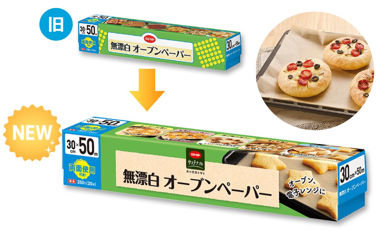 「どの調理器具に使えるのか?」というお問い合わせが多かったことから、使用できるもの・できないものの一覧を箱の側面に追加。これにより、オーブンだけでなく電子レンジや蒸し器でも安心して使えることが一目でわかるようになりました。