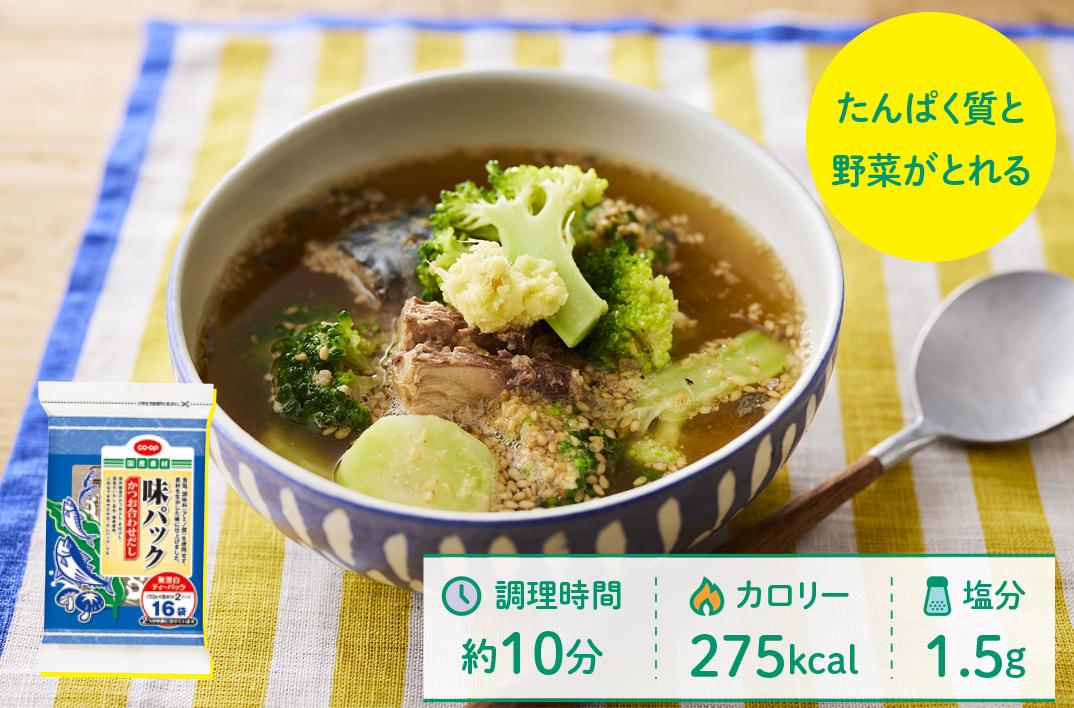 さば缶とブロッコリーのみそスープ