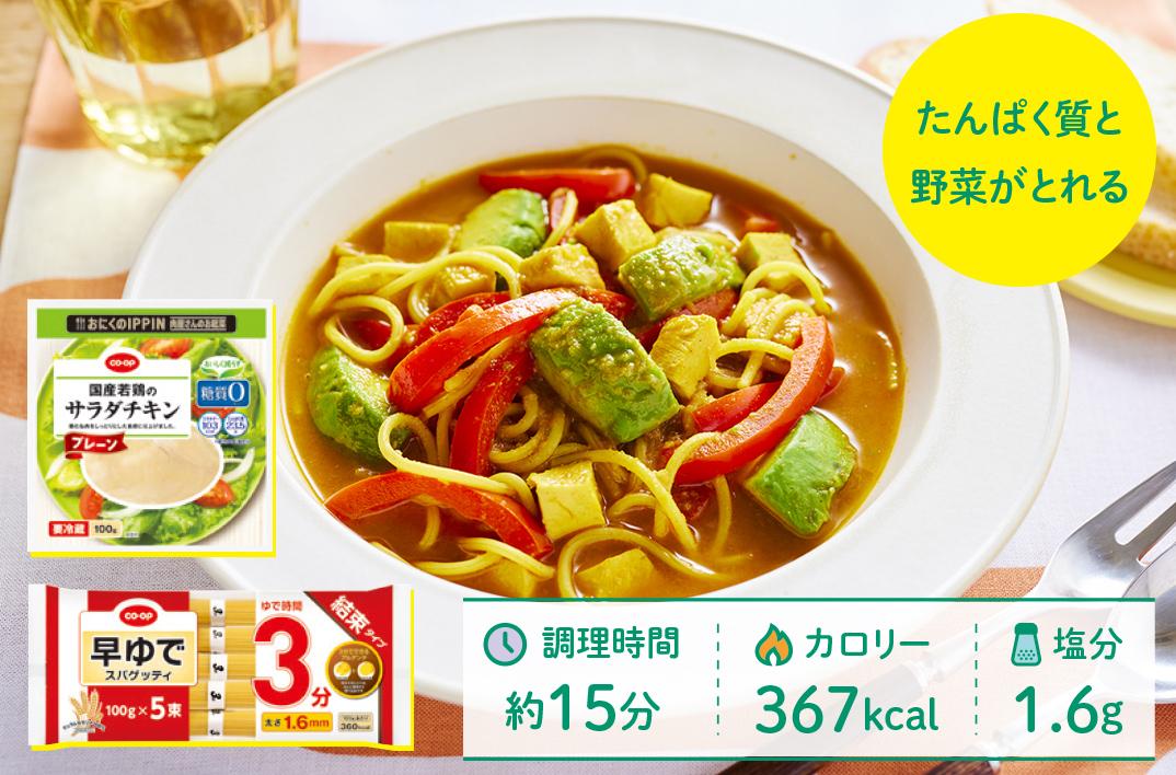 色鮮やかな野菜とスパイスの 香りが食欲そそる!パスタ入りで食べごたえのあるひと皿。